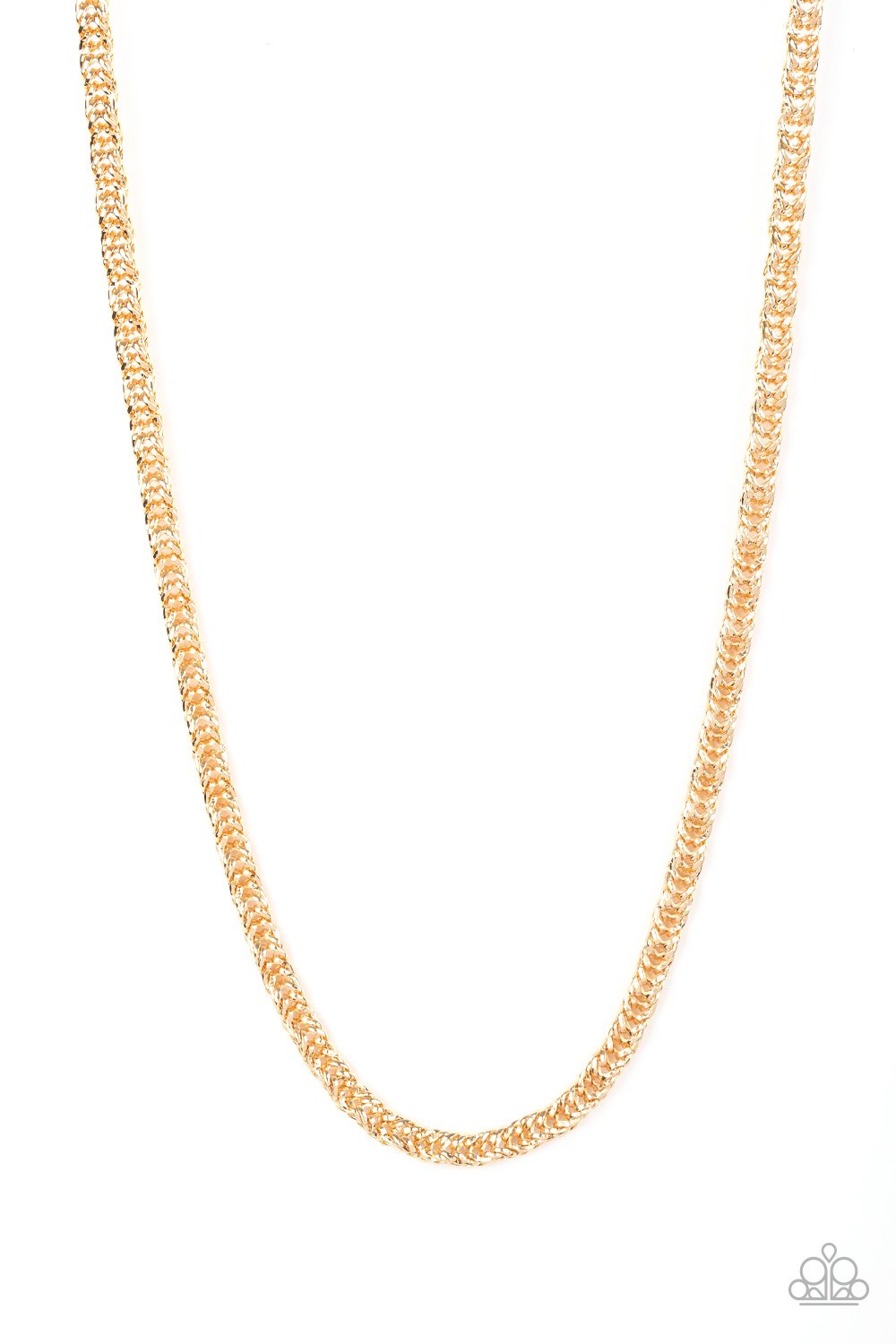 Brushed in a high-sheen finish, an ornate gold chain drapes across the chest for a bold look. Features an adjustable clasp closure.