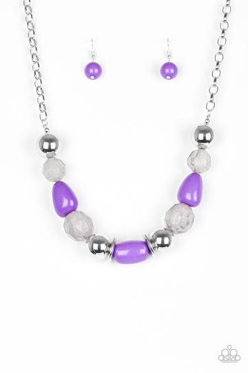 Dramatic silver, vivacious purple, and faceted cloudy beads are threaded along an invisible wire below the collar for a seasonal look. Features an adjustable clasp closure.